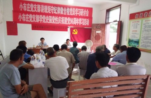 7月1日,在中國共產(chǎn)黨建黨96周年之際,大塢鎮(zhèn)小市莊村組織開展學(xué)黨史強(qiáng)黨性慶祝建黨96周年學(xué)習(xí)活動(dòng)。組織村黨支部全體黨員面對黨旗重溫入黨誓詞。市派小市莊村第一書記、集團(tuán)團(tuán)委副書記閆明國為全體黨員干部講黨課。 閆明國書記以推進(jìn) “兩學(xué)一做”教育實(shí)踐...