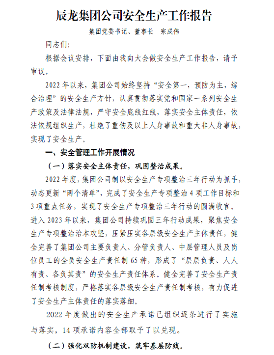 集團(tuán)董事長職代會安全生產(chǎn)工作報告